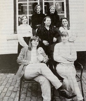Fancy met enkele medestudenten in een collegezaal van de Faculteit der Rechtsgeleerdheid